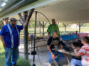 We had a good turnout for our picnic again this year. A little warm but always breezy. The food was fantastic as usual. Peggy brought out her loop antenna field package picked up at Joplin. You can see the antenna in one of the pictures. I believe it’s an AlexLoop. Later in the afternoon Chris, Ron and Curtis put up a 20 meter sloping dipole and eventually made contact with EI7M in Ireland using Ron’s IC-706. Sure it’s a club station but it’s still Ireland. Maybe it will be slightly cooler for our next picnic.